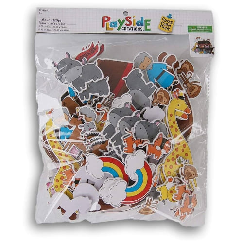 This foam kit includes 120 pieces enough to assemble six complete Noah’s Ark scenes — ideal for group projects, Sunday school, or home crafts that let children build and decorate their own animal‑filled ark.